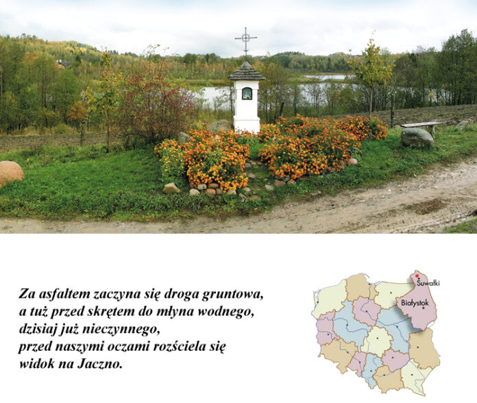 Jezioro Jaczno leży na terenie Suwalskiego Parku Krajobrazowego, dlatego są tu pewne ograniczenia. Na terenie całego parku biwakować nie wolno, natomiast już od paru lat można do jeziora dojechać samochodem. Z Suwałk drogą nr 658 jedziemy w kierunku Rutki Tartak i Wiżajn. Po przejechaniu ok. 20 km znajdziemy się w miejscowości Gulbieniszki. Jest tu wzniesienie o nazwie Cisowa Góra (256 m n.p.m.). Można stąd podziwiać okoliczne krajobrazy, w tym kilka jezior. W Gulbieniszkach skręcamy w lewo, zgodnie z drogowskazem do miejscowości Udziejek. Droga jest wąska, ale asfaltowa, prowadzi serpentynami pośród wzgórz. W Udziejkach kończy się asfalt i zaczyna droga gruntowa. 300 metrów dalej, przy starym niemieckim cmentarzu, jest rozjazd. Skręcamy w prawo i jedziemy wokół jeziora Kamenduł (po prawej), a potem pod górę na wprost kapliczki. Tu skręcamy w lewo do gospodarstwa państwa Mazalewskich, którzy Jaczno dzierżawią. Obok zabudowań jest stary, nieczynny młyn wodny z drugiej połowy XIX wieku. Koło napędzała Jacznówka.